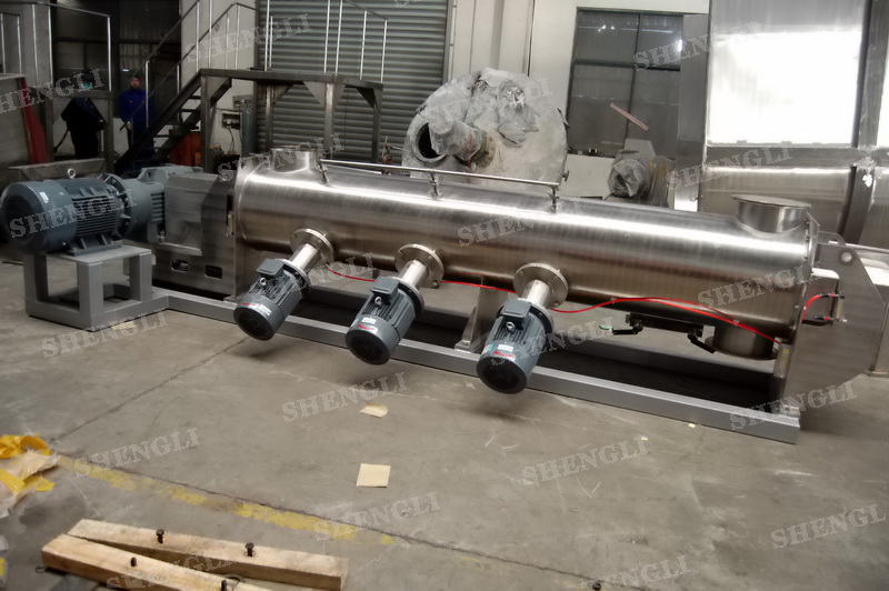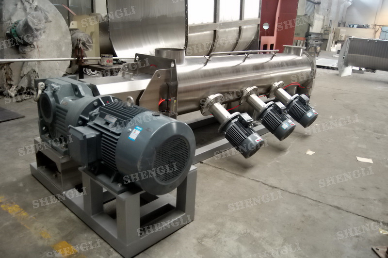 描述:單軸連續(xù)式攪拌機臥式安裝,進行連續(xù)式生產(chǎn)模式,推進槳葉配合高速飛刀有效打散、混合物料。設備主軸、飛刀主軸采用氣密封,杜絕粉料泄露。設備配置液體噴頭,可霧化加液。