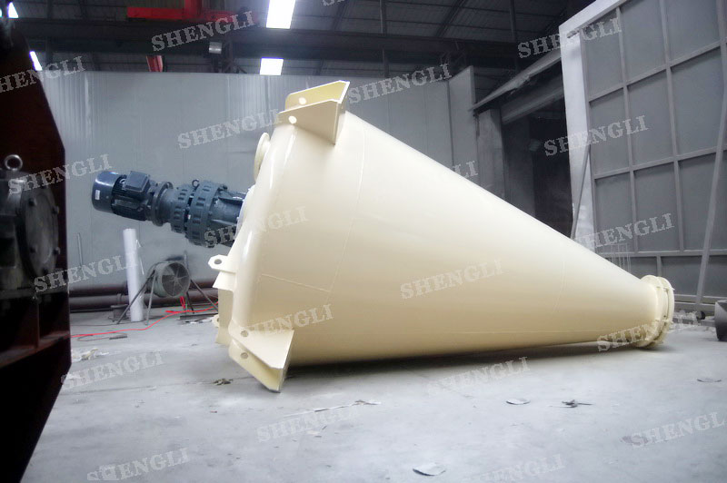 描述:錐形混合設(shè)備內(nèi)部安裝非對稱傾斜螺旋,雙螺旋自身旋轉(zhuǎn),提升物料,并有公轉(zhuǎn)減速箱驅(qū)動,沿錐體中心軸公轉(zhuǎn),360度攪拌物料,擁有非破壞性攪拌以及快速且無殘留卸料的特點。該設(shè)備配置手動錯位閥,內(nèi)外表面做防銹處理,假設(shè)人孔、觀察口、排氣口等設(shè)置。