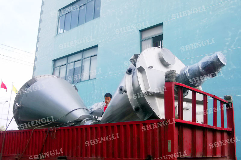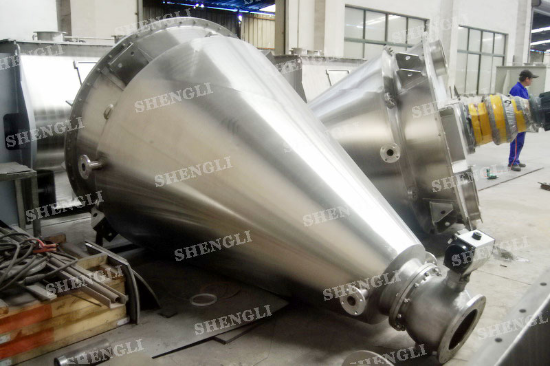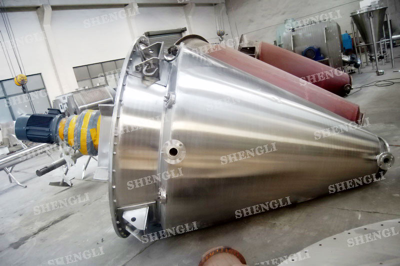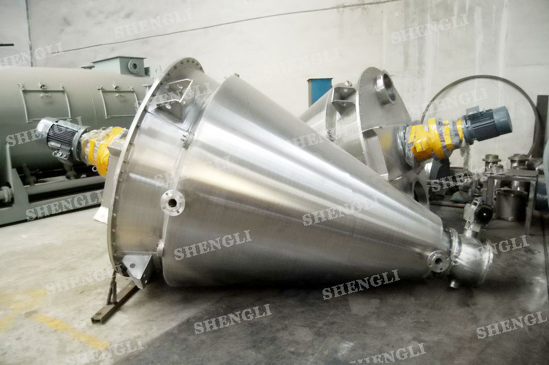 描述:錐形攪拌機內(nèi)部安裝非對稱傾斜螺旋,雙螺旋自身旋轉(zhuǎn),提升物料,并有公轉(zhuǎn)減速箱驅(qū)動,沿錐體中心軸公轉(zhuǎn),360度攪拌物料,擁有非破壞性攪拌以及快速且無殘留卸料的特點。該設(shè)備配置內(nèi)加熱夾套、配置氣動球面閥,內(nèi)外表面做亞光處理。