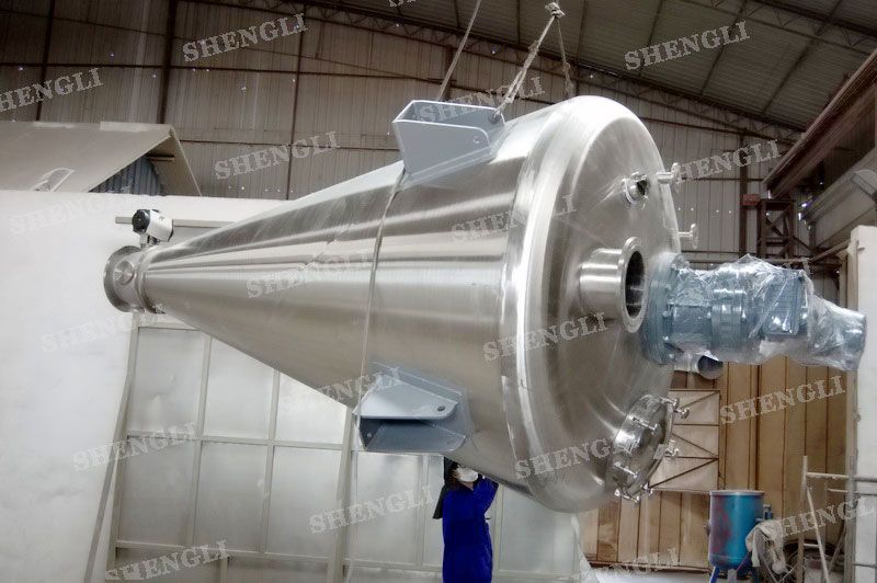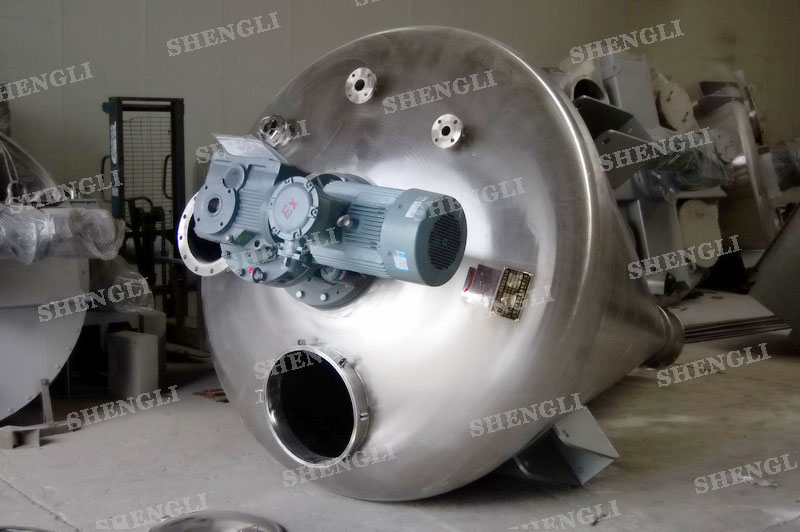 描述:錐形雙螺旋混合機(jī)內(nèi)部安裝非對(duì)稱傾斜螺旋,雙螺旋自身旋轉(zhuǎn),提升物料,并有公轉(zhuǎn)減速箱驅(qū)動(dòng),沿錐體中心軸公轉(zhuǎn),360度攪拌物料,擁有非破壞性攪拌以及快速且無殘留卸料的特點(diǎn)。該設(shè)備采用上蓋一體式,選用耐壓橢圓封頭結(jié)構(gòu)、配置氣動(dòng)球面閥,錐形中心軸噴液,內(nèi)表面做鏡面處理、外表面亞光處理,架設(shè)人孔、觀察口、排氣口等設(shè)置。