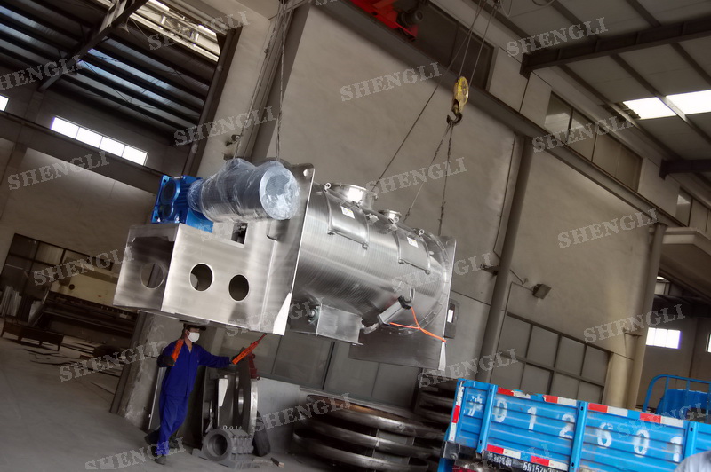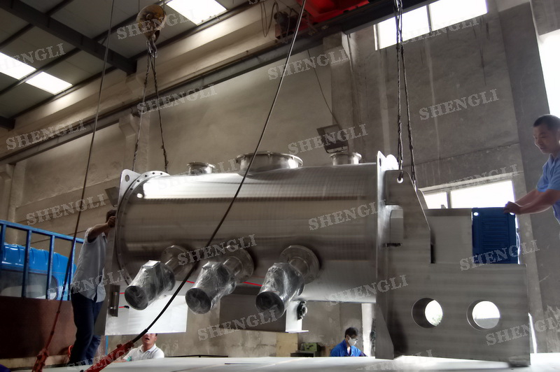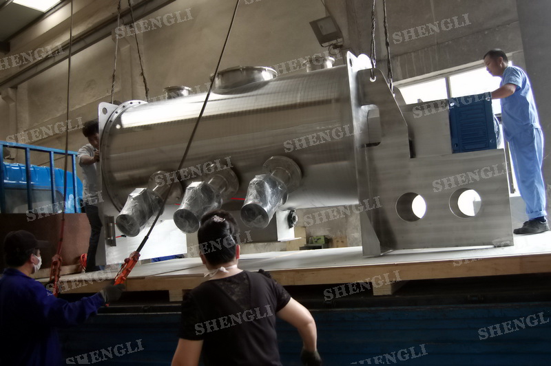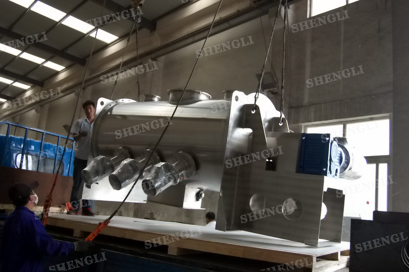 工作原理:犁刀攪拌機(jī)采用臥式圓柱筒體,內(nèi)設(shè)平行主軸,主軸上安裝若干犁式刀頭,通過較快的旋轉(zhuǎn)速度,分割、重合物料,實(shí)現(xiàn)快速攪拌的功能,常結(jié)合1500-3000轉(zhuǎn)高速剪切飛刀相互作用。