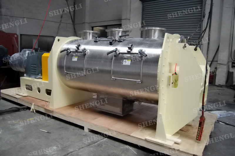 工作原理:犁刀式混合設(shè)備采用臥式圓柱筒體,內(nèi)設(shè)平行主軸,主軸上安裝若干犁式刀頭,通過較快的旋轉(zhuǎn)速度,分割、重合物料,實(shí)現(xiàn)快速攪拌的功能,常結(jié)合1500-3000轉(zhuǎn)高速剪切飛刀相互作用。