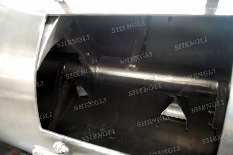 工作原理:犁刀臥式混合機采用臥式圓柱筒體,內(nèi)設(shè)平行主軸,主軸上安裝若干犁式刀頭,通過較快的旋轉(zhuǎn)速度,分割、重合物料,實現(xiàn)快速攪拌的功能,常結(jié)合1500-3000轉(zhuǎn)高速剪切飛刀相互作用。