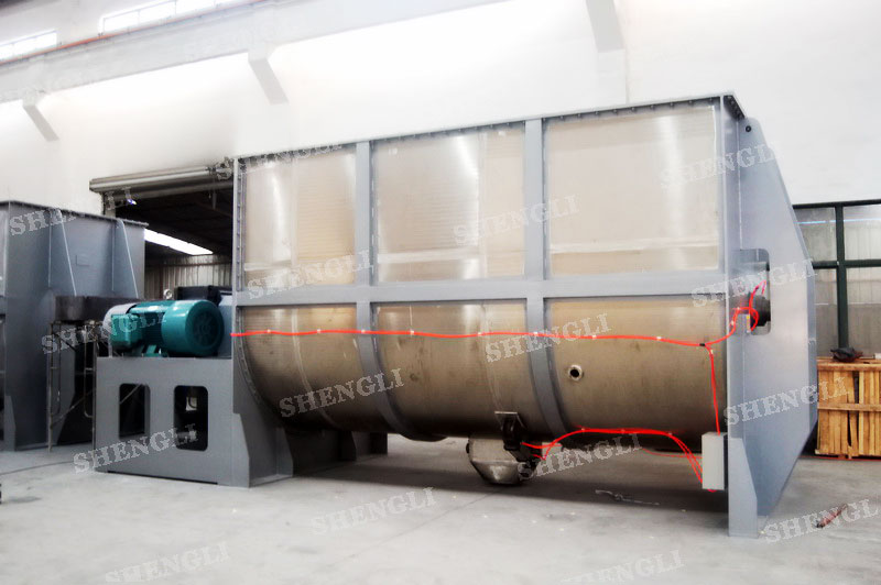 工作原理:螺帶大型混合機采用U型筒體,內(nèi)裝平行主軸,主軸上安裝正反雙向的盤條螺帶,不同維度螺帶分內(nèi)螺帶與外螺帶,物料在螺帶的驅(qū)使下反復(fù)參混,能夠快速高效的混合。