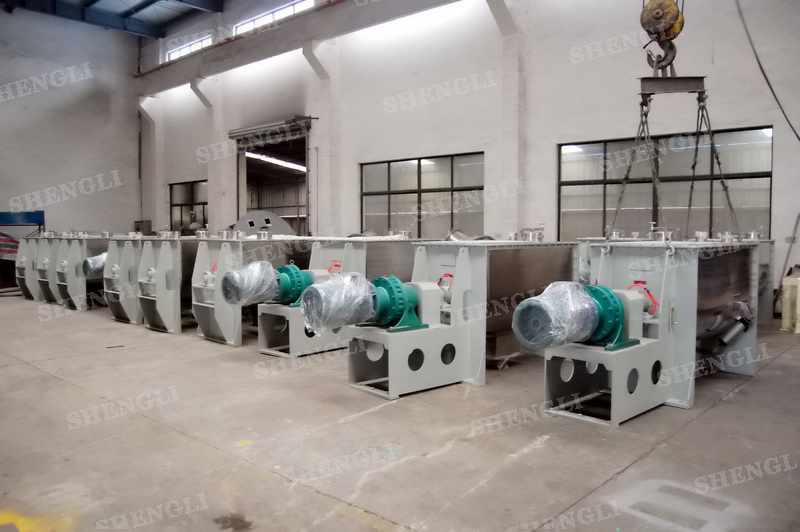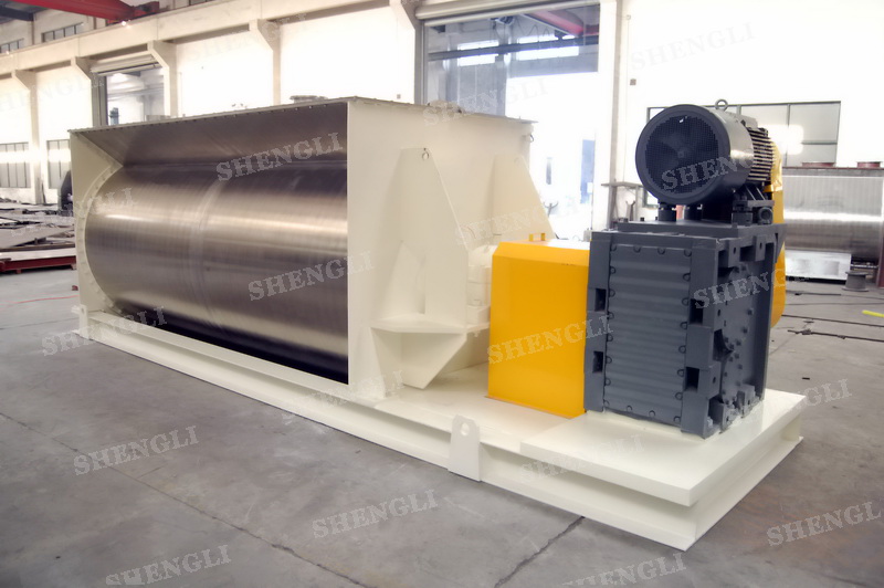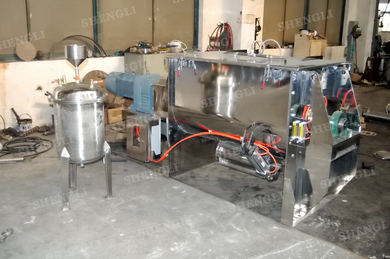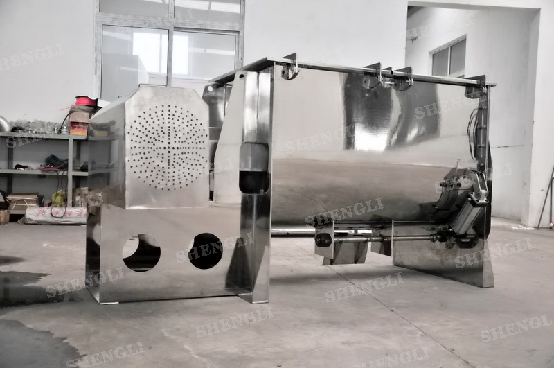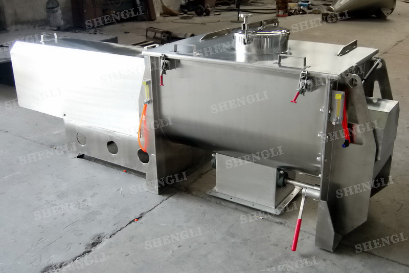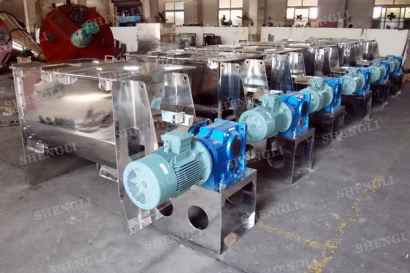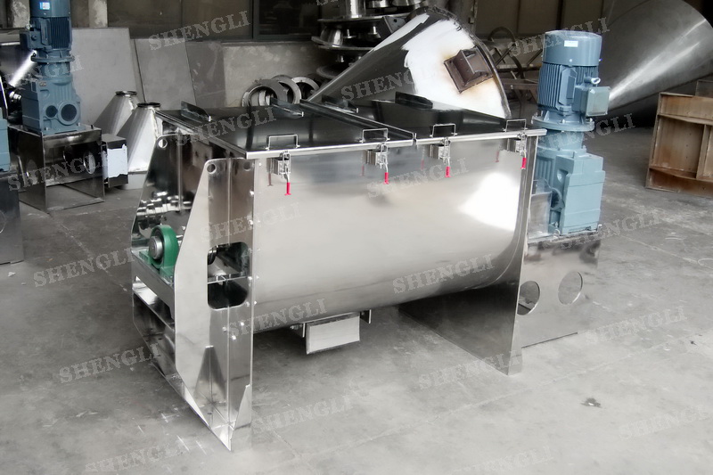 工作原理:螺帶混合機(jī)采用U型筒體,內(nèi)裝平行主軸,主軸上安裝正反雙向的盤條螺帶,不同維度螺帶分內(nèi)螺帶與外螺帶,物料在螺帶的驅(qū)使下反復(fù)參混,能夠快速高效的混合。