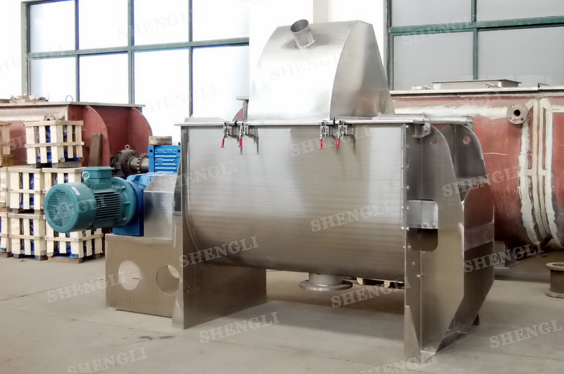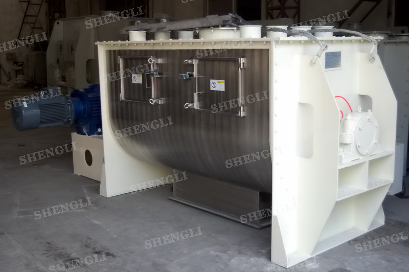 工作原理:螺帶混合機(jī)采用U型筒體,內(nèi)裝平行主軸,主軸上安裝正反雙向的盤條螺帶,不同維度螺帶分內(nèi)螺帶與外螺帶,物料在螺帶的驅(qū)使下反復(fù)參混,能夠快速高效的混合。