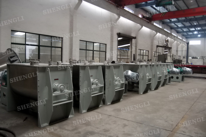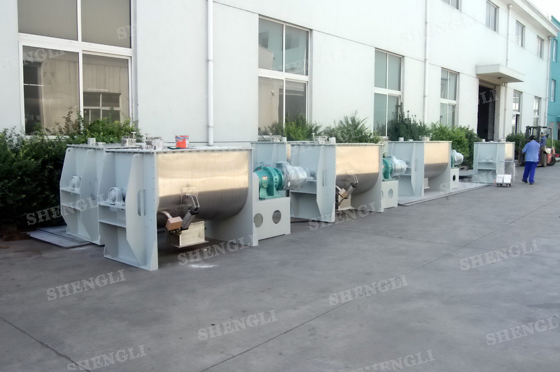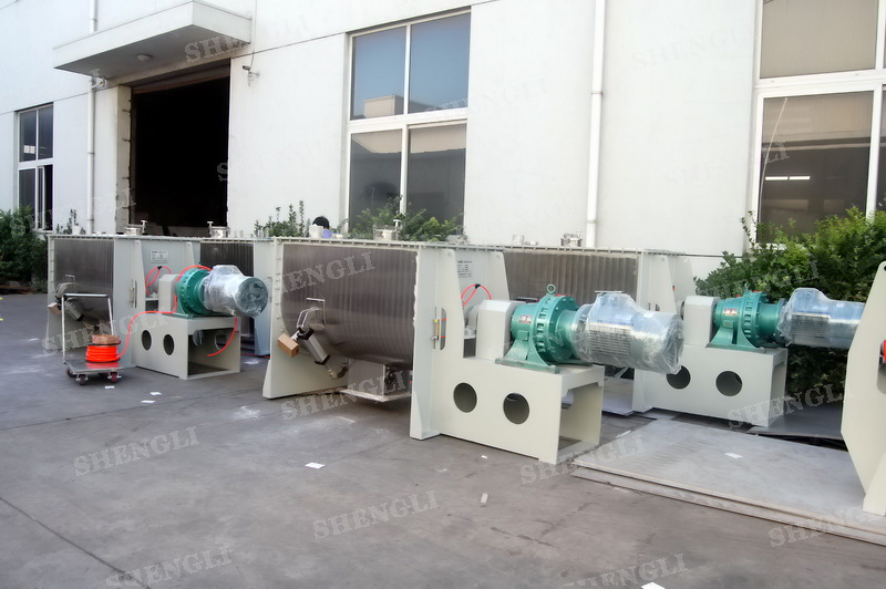工作原理:螺帶混合機(jī)采用U型筒體,內(nèi)裝平行主軸,主軸上安裝正反雙向的盤條螺帶,不同維度螺帶分內(nèi)螺帶與外螺帶,物料在螺帶的驅(qū)使下反復(fù)參混,能夠快速高效的混合。