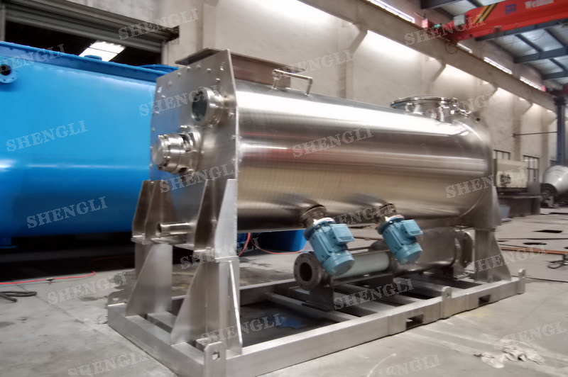 工作原理:螺帶攪拌設(shè)備采用U型筒體,內(nèi)裝平行主軸,主軸上安裝正反雙向的盤條螺帶,不同維度螺帶分內(nèi)螺帶與外螺帶,物料在螺帶的驅(qū)使下反復(fù)參混,能夠快速高效的混合。