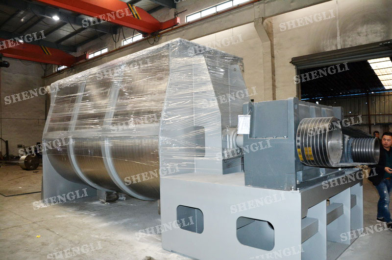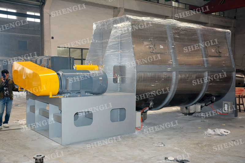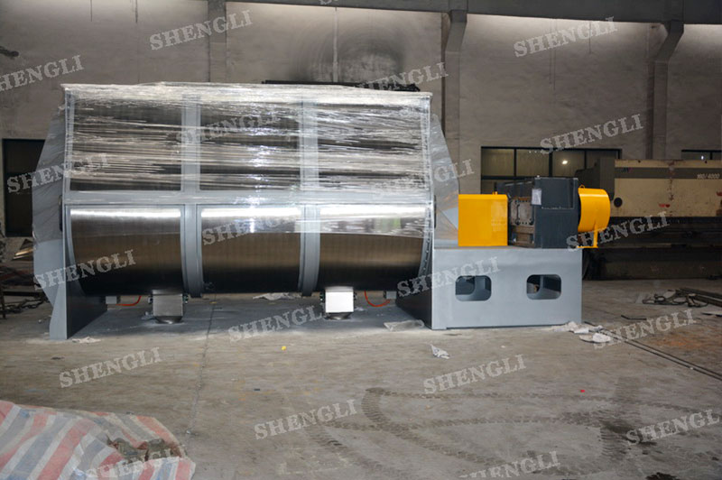 工作原理:螺帶攪拌設(shè)備采用U型筒體,內(nèi)裝平行主軸,主軸上安裝正反雙向的盤條螺帶,不同維度螺帶分內(nèi)螺帶與外螺帶,物料在螺帶的驅(qū)使下反復(fù)參混,能夠快速高效的混合。