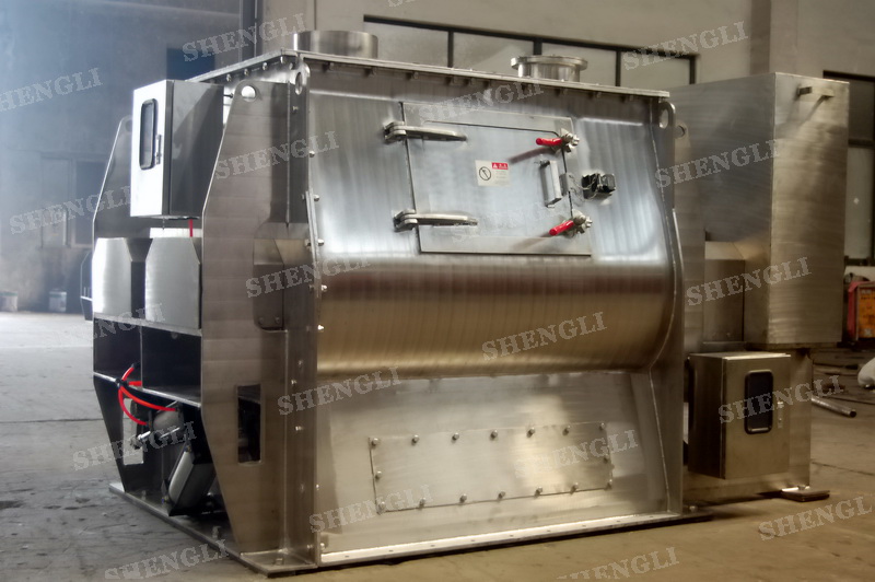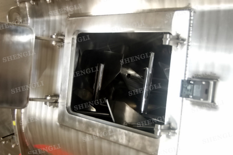 工作原理:無重力攪拌機(jī)采用雙U型筒體,內(nèi)裝平行的雙主軸,主軸設(shè)有對稱的多組槳葉,其雙軸的運行軌跡部分重合形成嚙合空間,雙軸在受雙電機(jī)同步驅(qū)動,同步的對稱向外翻攪物料,致使物料能夠達(dá)到瞬間失重點,該設(shè)備具備高效物料無差別的混合能力。