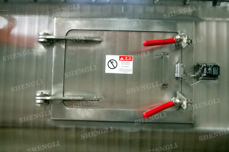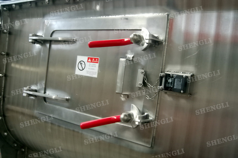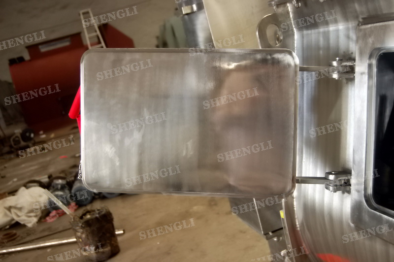 設(shè)備配置:設(shè)備搭載雙驅(qū)動同步齒輪減速機(jī);筒蓋法蘭式并開設(shè)若干入料口;設(shè)備主軸采用氣密封;筒側(cè)雙向開設(shè)檢修門;筒體底部配置氣動翻板閥;