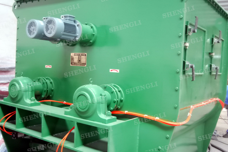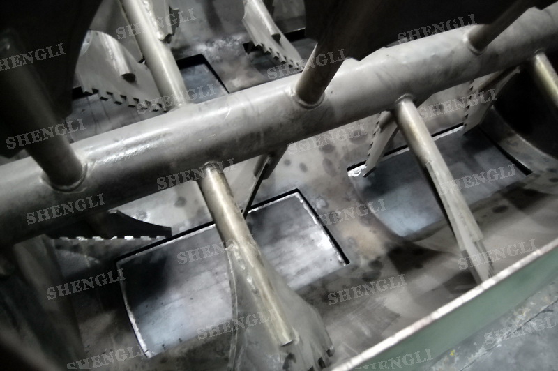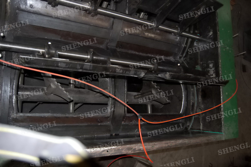 工作原理:雙軸攪拌設(shè)備采用雙U型筒體,內(nèi)裝平行的雙主軸,主軸設(shè)有對(duì)稱的多組槳葉,其雙軸的運(yùn)行軌跡部分重合形成嚙合空間,雙軸在受雙電機(jī)同步驅(qū)動(dòng),同步的對(duì)稱向外翻攪物料,致使物料能夠達(dá)到瞬間失重點(diǎn),該設(shè)備具備高效物料無(wú)差別的混合能力。